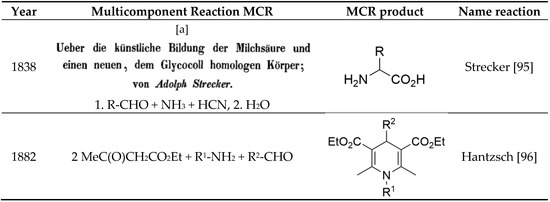 Well-known multicomponent reactions (MCRs). [a] On the Artificial Formation of Lactic Acid and a New Compound Homologous to Glycine; by Adolph Strecker.