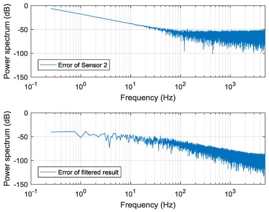 Figure 8 shows the improvement of this algorithm. The first curve is the original error in Sensor 2. The second curve is the error of the filtered result. The simulation shows that a 34-dB improvement is achieved in the low-frequency band. The measurement noise in the high-frequency band is also reduced.