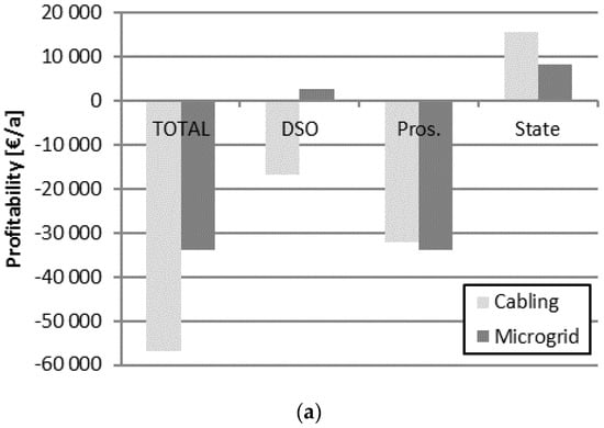 The underground cabling and microgrid options may have different influences on the different stakeholders. The same calculation data as in Section 4.1 was used for the assessment of the economic influences of the two options on different stakeholders, DSO, consumer/prosumer, and the state.