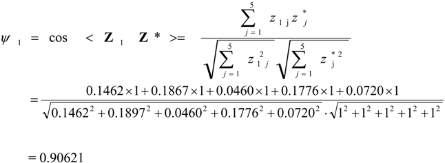 , j = 1…N. We calculated the cosine ψi of the angle between the index vector Zi = {zij} (i = 1…m, j = 1…N) given by the i-th scheme and the ideal solution indicators vector Z*. The steps of multi-objective decision based on vectorial angle cosine is as follows. | Step 1: | ![]() |