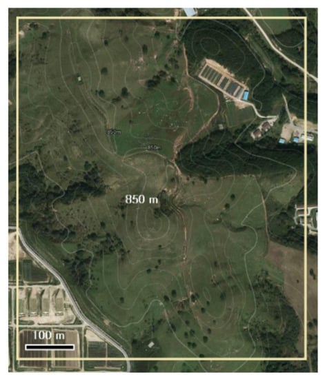 Topographic survey of study site. The photograph was obtained from Kakao Map (www.map.kakao.com, assessed on 21 April 2021).