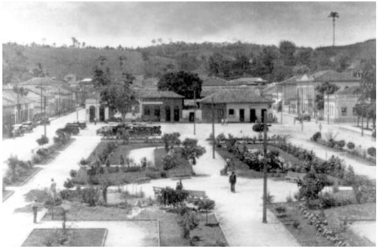 Vintage photograph of the Tiradentes Square, circa 1930, compared to a recent photograph. The vintage is freely available at the Teófilo Otoni municipal administration internet site (http://www.teofilootoni.mg.gov.br/site/sobre/historia/, copy at 10 December 2017). The recent photograph is authored by Sérgio Mourão, and freely available in http://www.conhecaminas.com/2017/05/15-lindas-e-charmosas-pracas-de-minas.html, 27 May 2018.