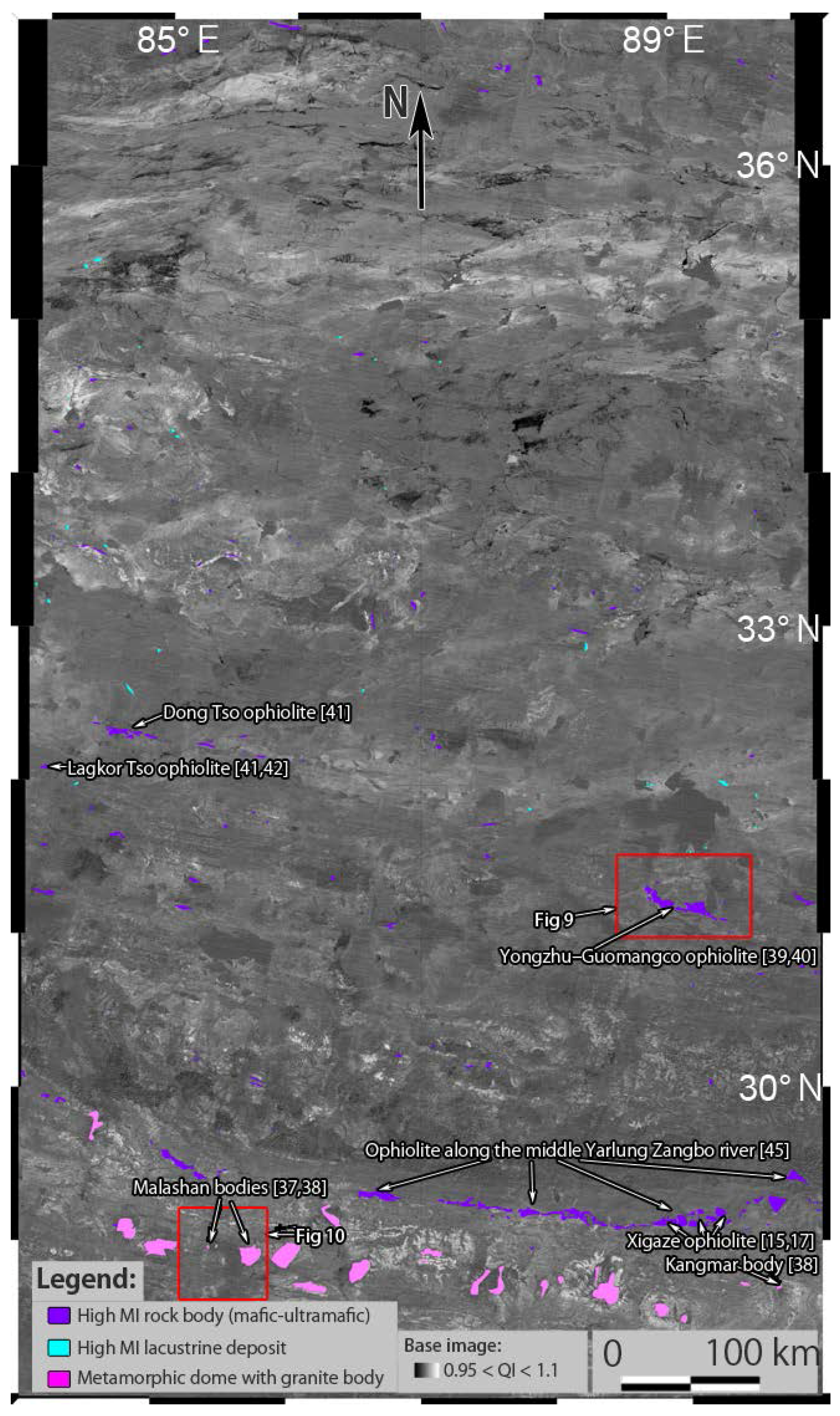 | Ultramafic | Ophiolites related to sutures | MI > 0.92 | Light purple | Not clear | Confirmed [14,15,16,17,18,25,26,27,28,29,30] |