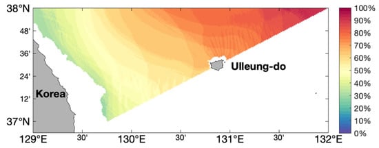 Tsunamis, generated off the west coast of Japan and propagating to the eastern sea of Korea, mainly damage the eastern coastal cities of Korea due to an underwater mountain ridge called the Yamato Rise []. Thus, this study defines a higher tsunami detection probability in areas where tsunami energy is primarily due to topology.