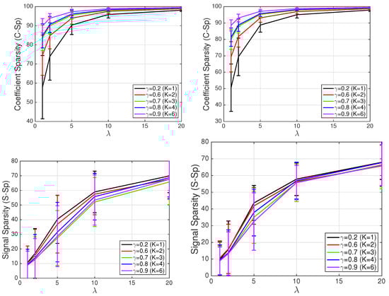 To measure the effectiveness of the proposed approach, we used several performance metrics that measure both the model’s sparsity and its accuracy in representing the original signal. On the one hand, the sparsity was gauged by the coefficient sparsity (C-Sp),
