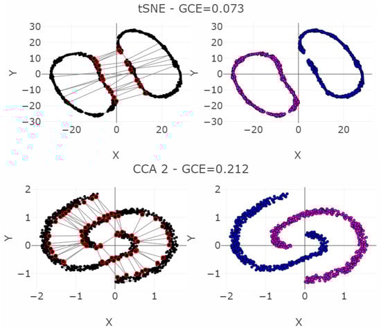 - Demartines, P.; Hérault, J. CCA: “Curvilinear component analysis”. In Proceedings of the 15° Colloque sur le Traitement du Signal et des Images, Antibes, France, 18–21 September 1995. [Google Scholar]