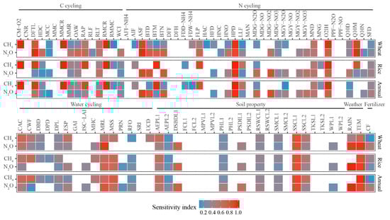 Sensitivity Analysis of N2O and CH4 Emissions in a Winter Wheat–Rice Double Cropping System