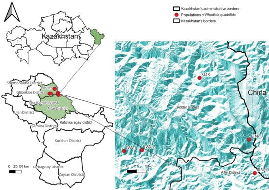Background: Rhodiola quadrifida (Pall.) Fisch. & C.A. Mey. (Crassulaceae) is a rare medicinal species in the Kazakh Altai, yet information on its population structure and genetic diversity remains limited. This study presents findings from an investigation of natural R. quadrifida populations. Methods: