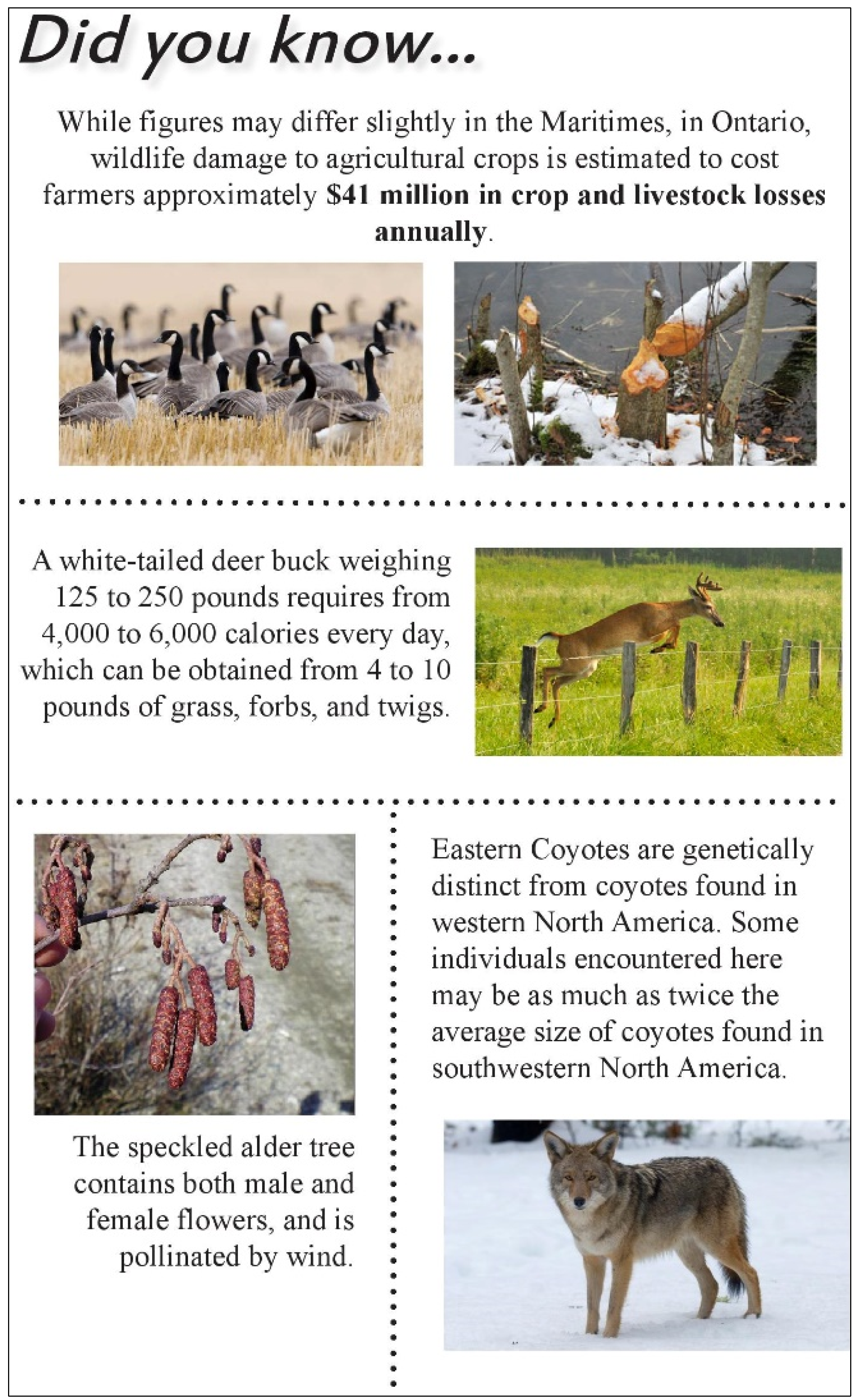 This research was funded by the Nova Scotia Department of Natural Resources (NSDNR), and Agriculture and Agri-Food Canada. The survey was designed with help from staff from the NSDNR Wildlife Division, Yoko Yoshida, and administrators at the provincial member groups of the Canadian Federation of Agriculture who sent it out to farmers: the Agricultural Association of New Brunswick and the Nova Scotia Federation of Agriculture. The survey was translated into French by Marie-Êve Lenghan. We would like to thank the input from three anonymous reviewers, and Susan Haydt, for helping us to strengthen the manuscript. Finally, and most importantly, thanks to the survey respondents who took the time to complete it. Our method of engagement with human subjects for this research was guided by the Canadian Tri-Council Policy Statement on Ethical Conduct of Research Involving Humans (2010) and approved in 2014 by the Dalhousie University Research Ethics Board, under certification 2014-3205.