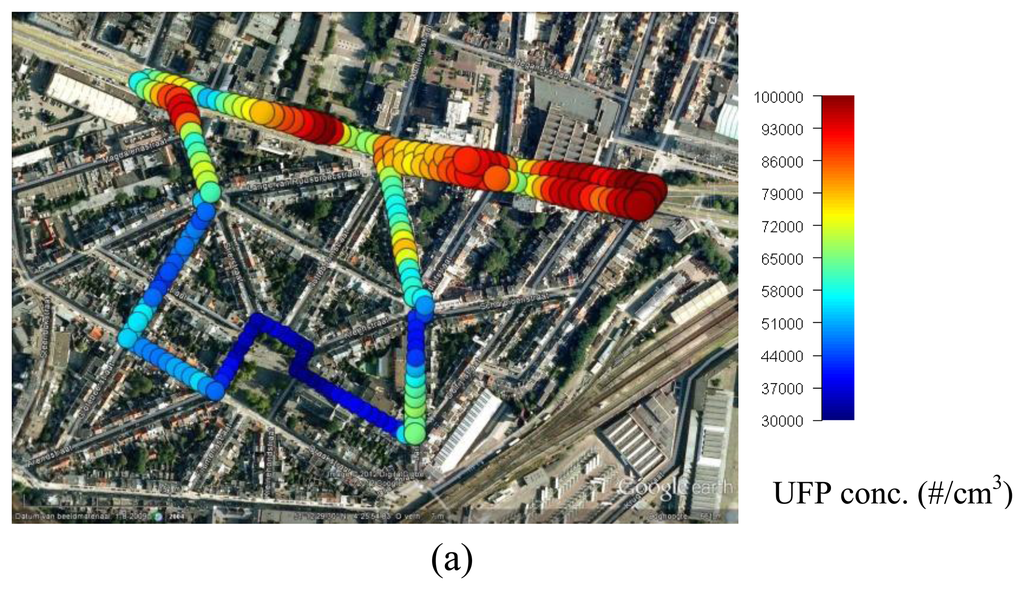 - Peters, J.; Theunis, J.; van Poppel, M.; Berghmans, P. Monitoring PM10 and untrafine particles in urban environments using mobile measurements. Aerosol Air Qual. Res. 2013. accepted for publication. [Google Scholar]