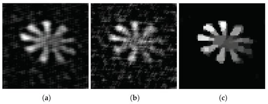 Whereas, when performing high-resolution imaging, single pixel imaging has some defects such as needing a lot of measurements and large amount of calculations. Thus, it needs a long time for image reconstruction. To solve these problems, some researchers obtain a priori information with a few previous measurements, on the basis of which they construct an adaptive measurement matrix to reduce the number of measurements []. They propose that the optimal way for choosing the measurement matrix is to select the measurement matrix that makes differential entropy decrease fastest. However, a large amount of computation is needed to calculate the optimal measurement matrix in this arithmetic. Averbuch et al. proposed an adaptive compressed sampling scheme that directly uses sparse base instead of a random measurement matrix for imaging to achieve a high-quality reconstruction of the image and greatly reduces reconstruction time []. Abmann and Byer present an approach for adaptive computational ghost imaging []. They obtain a rough image first and apply wavelet transform to that image. Then they find the space area where the coefficient of the image is larger then a threshold in wavelet basis. Afterwards, they image these areas with a higher resolution to reconstruct images with higher resolution. As it needs multiple levels of wavelet transform and imaging, the adaptive process becomes extremely complicated and often requires multiple adaptive measurements. In addition, in the space area where the wavelet coefficient is small, that adaptive computational ghost imaging system has a low imaging accuracy and large image reconstruction error.