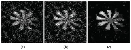 The single-pixel imaging scheme, based on Compressed Sensing (CS) theory, provides a new solution to the problems above. In that scheme, the target is imaged on a digital micromirror device (DMD), and focused on a single point detector after being modulated by the DMD. A 2D image can be reconstructed by a series of values of light intensity, detected by a single point detector, and the measurement matrix loaded into the DMD. On the basis of CS theory, the single-pixel imaging scheme could reduce the required measurements and shorten the imaging time. On the basis of single-pixel imaging technology, in 2012, Yu et al. proposed a single-photon compressed imaging scheme, in which the single point detector is replaced by a single-photon detector []. That scheme proved to have higher sensitivity for imaging than the tradition Single-pixel imaging scheme.