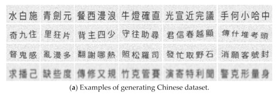 Examples of generating dataset, including Chinese, uppercase, and lowercase letters.