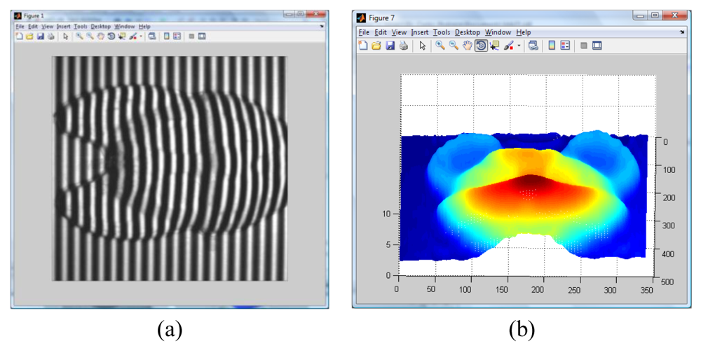 To validate the methodology, the following experiments were conducted. Several objects with different shapes were created by computer, where the height is known in every point in the object. Then, the Fourier and wavelet based analysis are applied as well as the methodology proposed by Gdeisat et al. [15]. The height of the virtual object was compared with each one of the analysis and the results are presented in Table 1. Finally, the wavelet method has been applied to several real objects, and the respective results of the reconstruction process can be seen in Figure 10.
