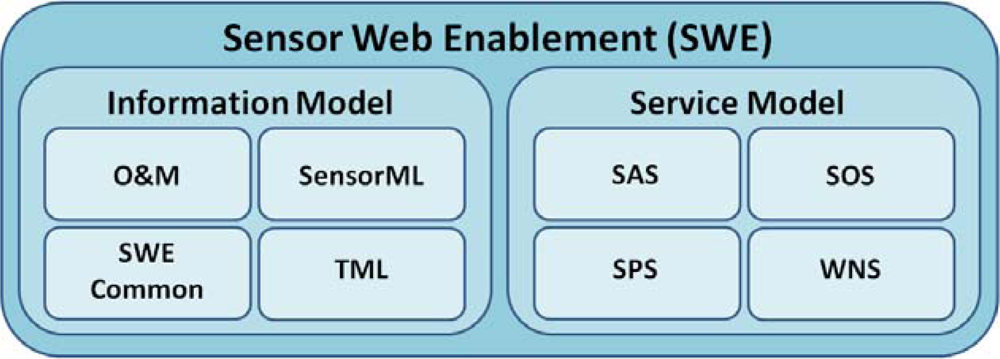 Within the SWE information model, a set of standards has been defined that allows the XML based encoding of data observed by sensors as well as metadata for describing sensors. It comprises four different standards: