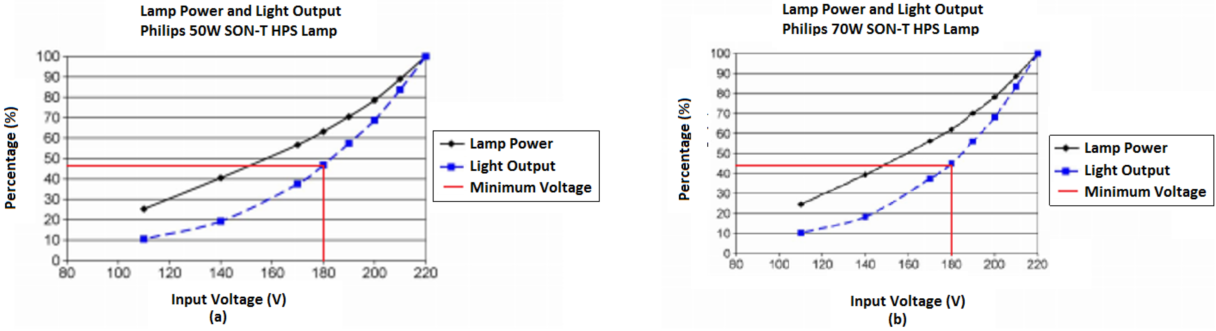 These power savings are under nominal conditions and although they might be considered insignificant, they should be taken into account because the power saving percentage in the case of a 55 W SOX is 18%. To analyze the benefit of this replacement under normal conditions, the research carried out by Omar [32] was studied. They examined the energy consumption of 277 units of 250 W HPS for a month. The energy consumption with electromagnetic ballasts was 30,913.2 kWh and the energy used with electronic ballasts was 20,172.7 kWh. Therefore in this case the energy saving was 34.74%. Besides, there are other researchers that have studied the benefits regarding the supply voltage. A good example is the research done by Dolora [33], who studied the savings for HPS 150 W lamps. This research concluded that the supply voltage bears on in the final energy consumption. Table 5 shows the power variation regarding the supply voltage.