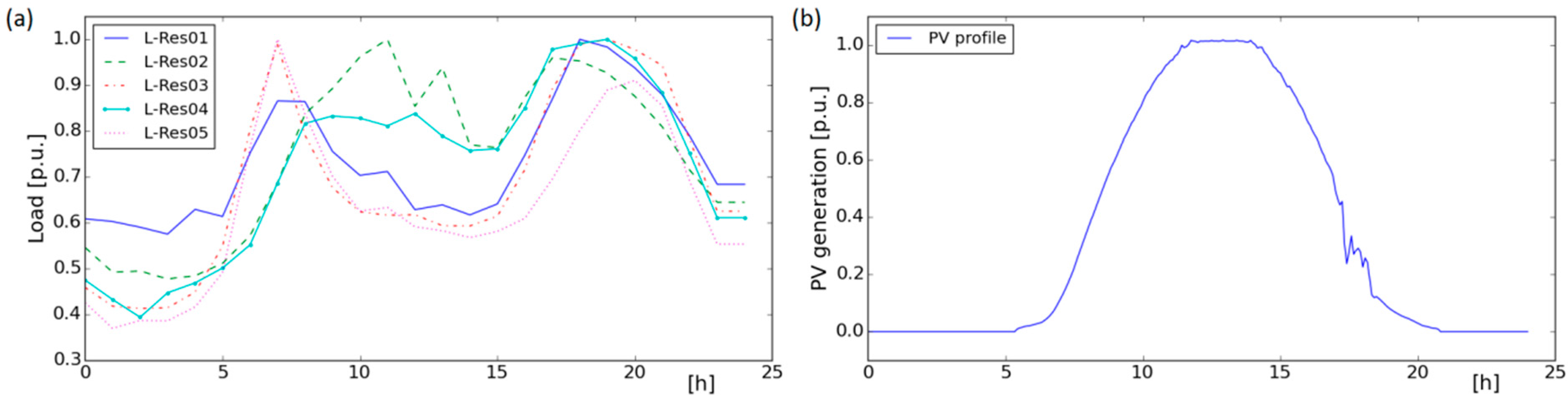 - Olivier, F.; Aristidou, P.; Ernst, D.; van Cutsem, T. Active management of low-voltage networks for mitigating overvoltages due to photovoltaic units. IEEE Trans. Smart Grid 2015, 7, 926–936. [Google Scholar]