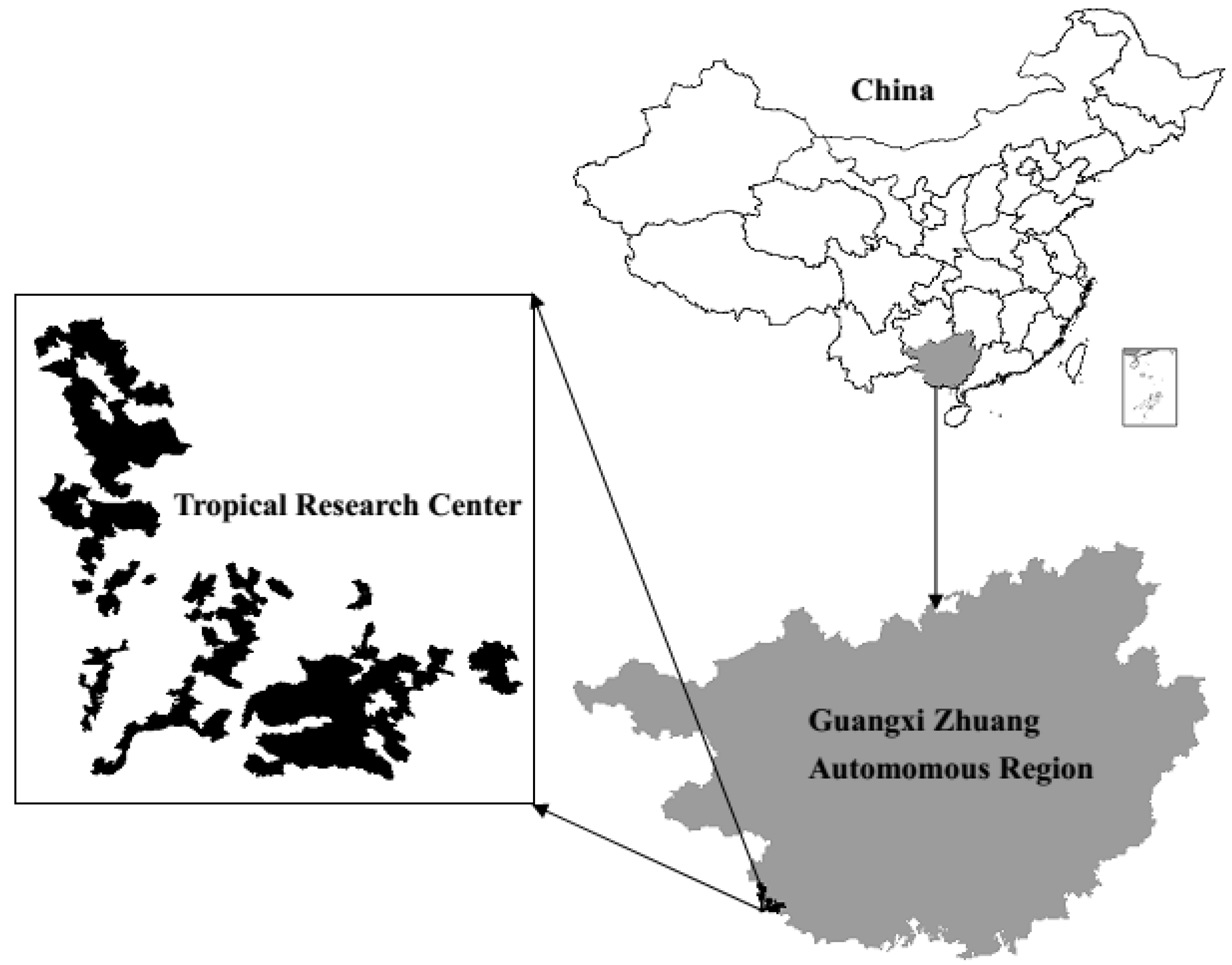 - Cai, D.; Guo, W.; Jia, H.; Lu, L.; Li, j.; Chen, J. Sustainable management of plantations—Taking as an example in the implementation of ecological management approach in Experimental Center of Tropical Forestry. For. Resour. Manag. 2008, 2, 42–46. [Google Scholar]