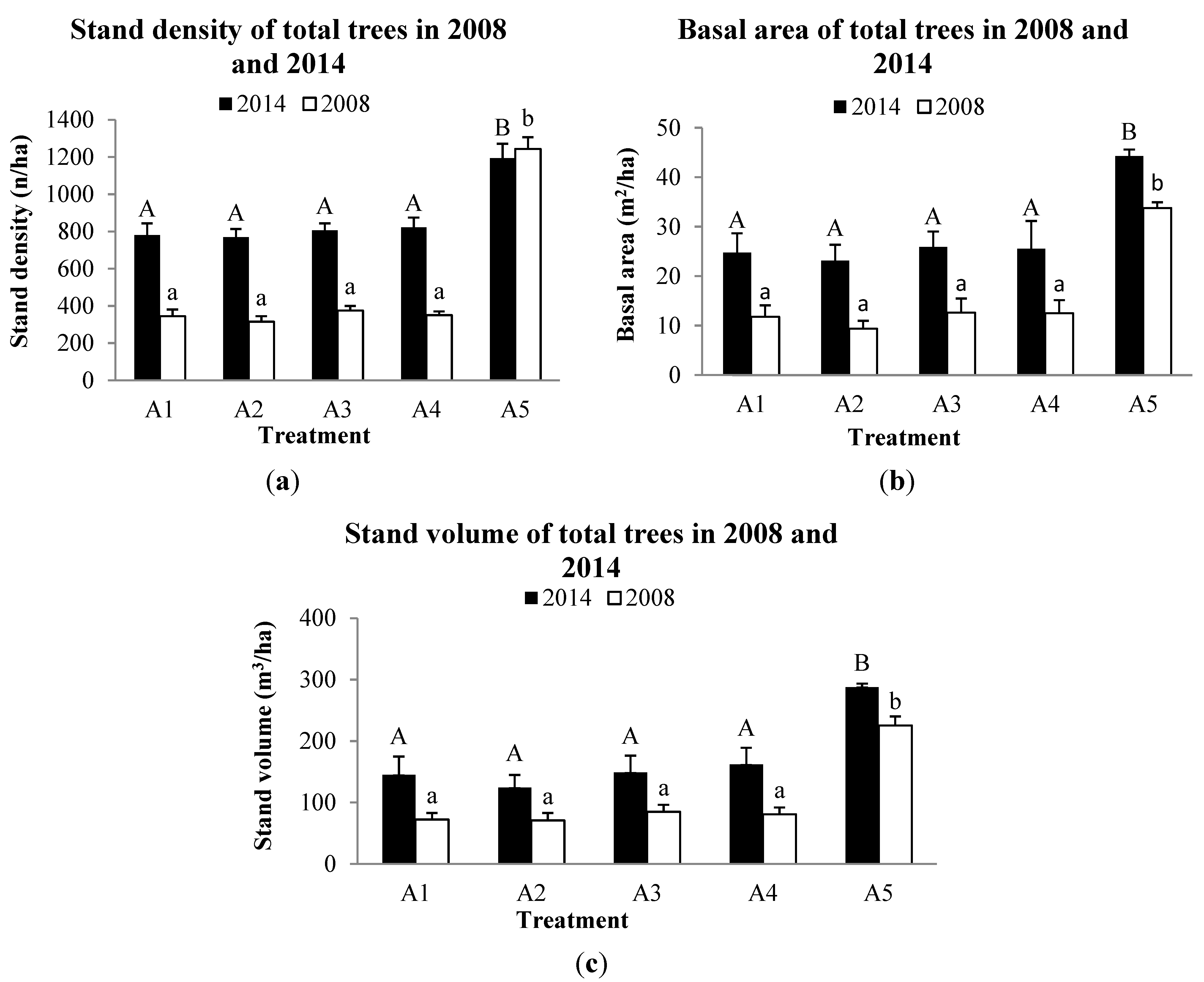 | A4 | Stand density | 350 ± 94 | 343 ± 103 | 350 ± 94 | 781 ± 103 | 0.000 | ||