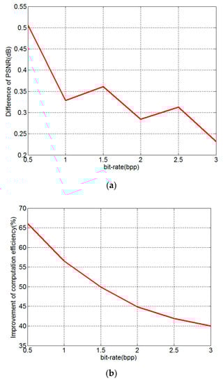 Comparison of compression performance and compression time: (a) decreased PSNR of the proposed method compared to conventional NTD; and (b) the improvement of the proposed method compared to conventional NTD.