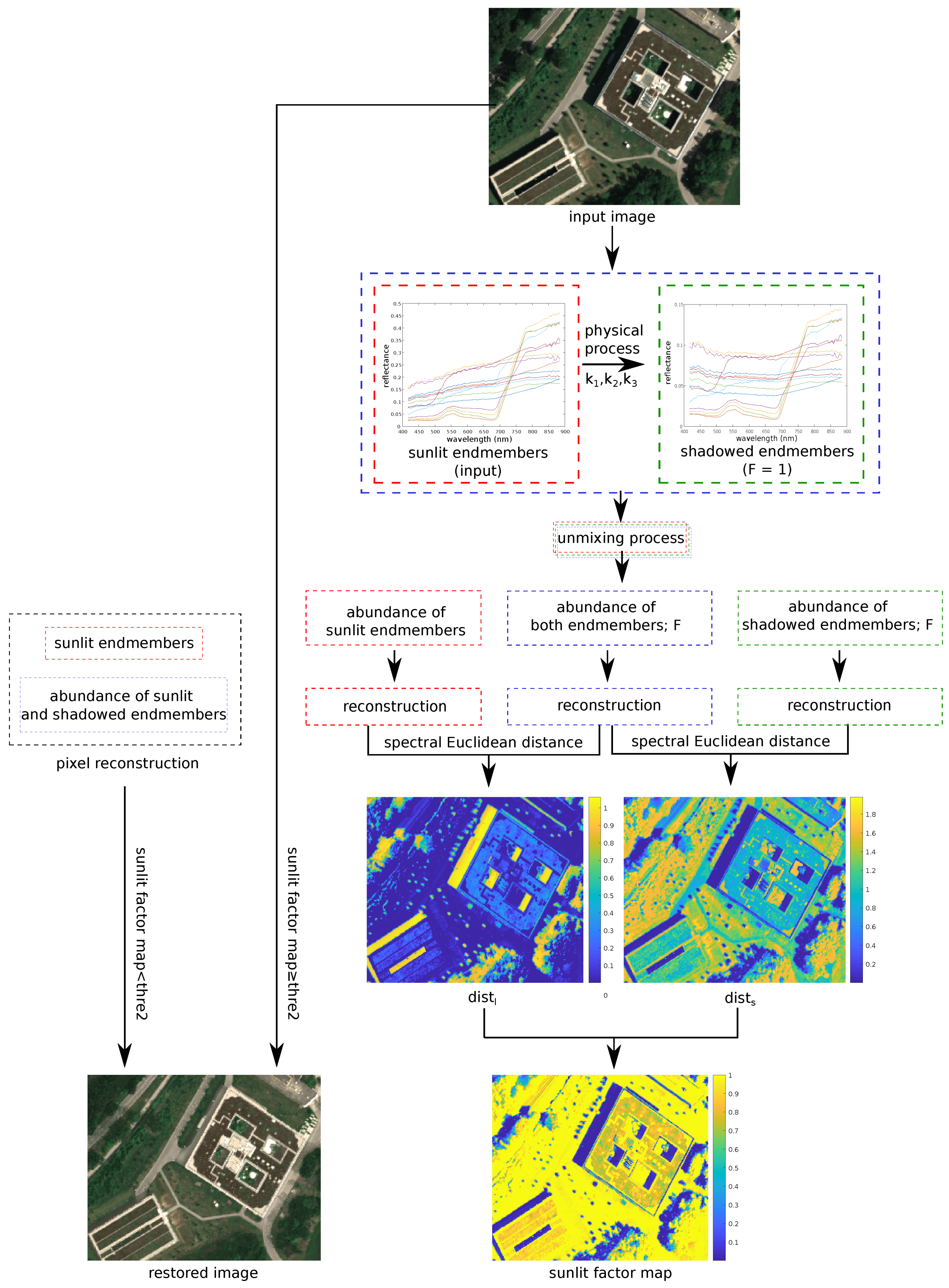 - Shadow restoration may introduce spectral distortion in sunlit pixels.