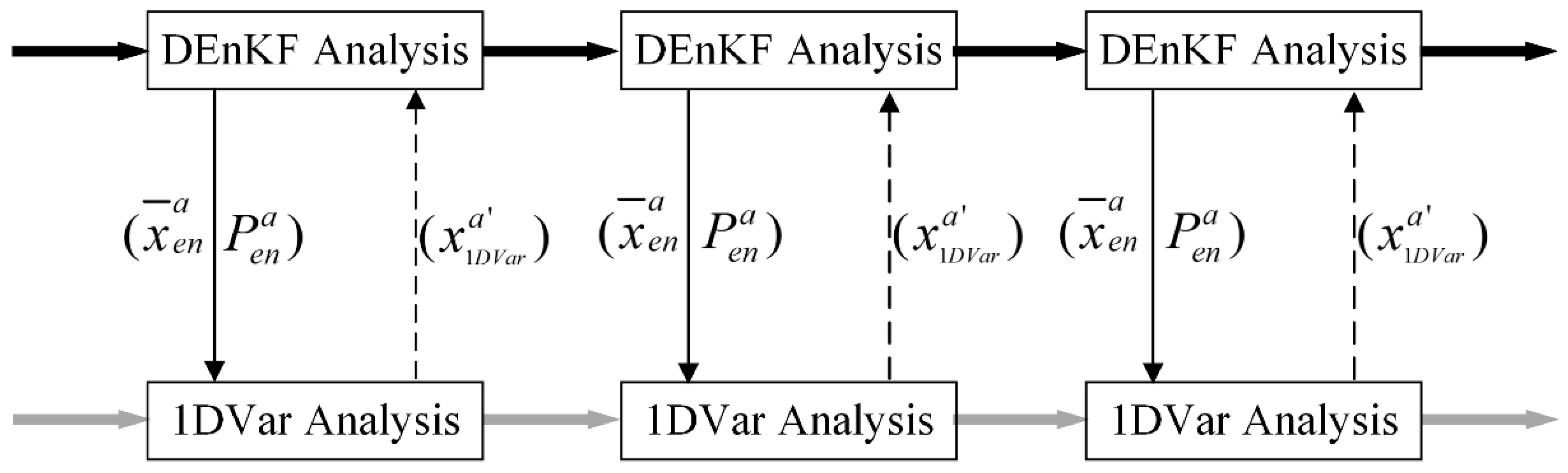 - Zhang, F.; Zhang, M.; Poterjoy, J. E3DVAR: Coupling an ensemble kalman filter with three-dimensional variational data assimilation in a limited-area weather prediction model and comparison to E4DVar. Mon. Weather Rev. 2013, 141, 900–917. [Google Scholar] [CrossRef]