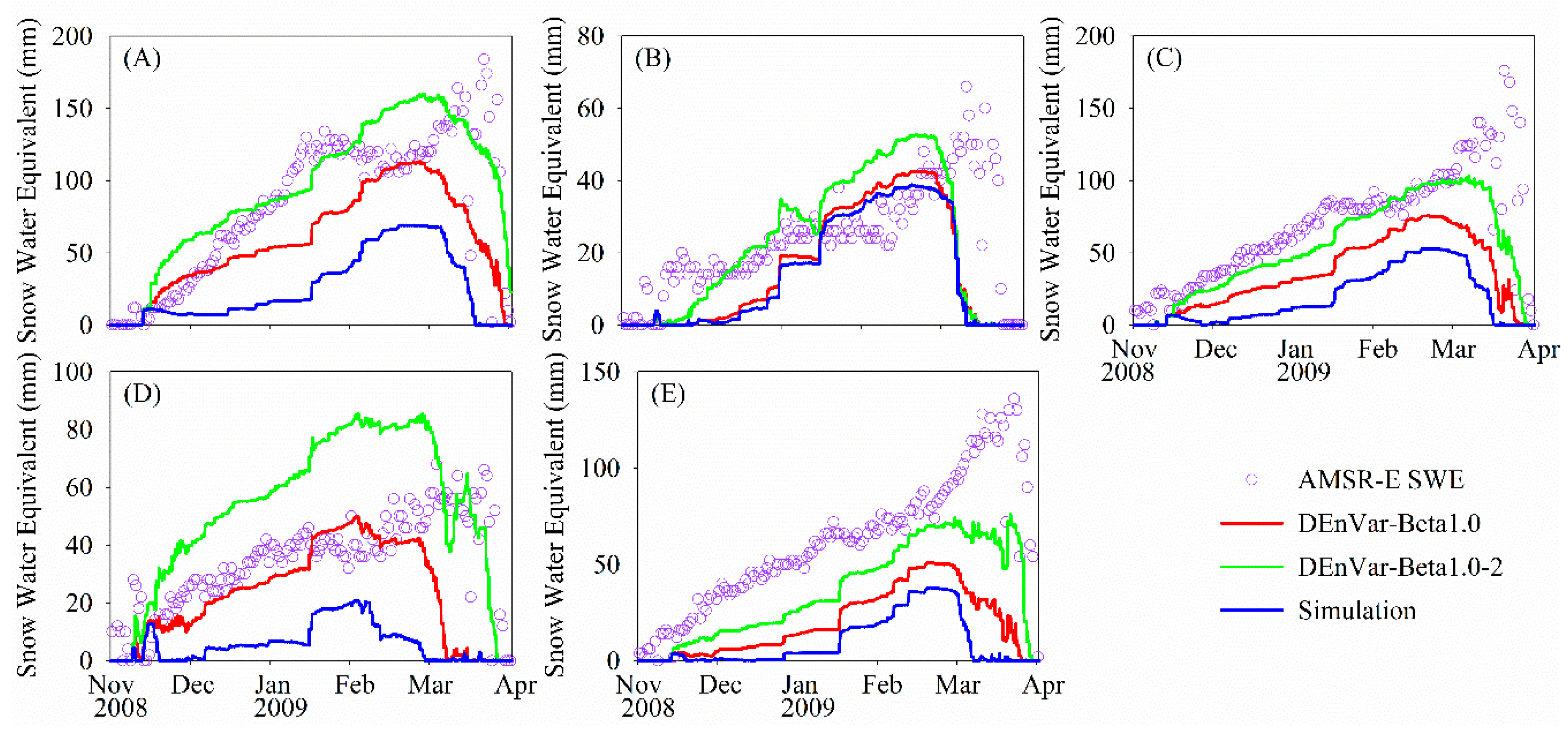 4.1.2. Comparison with AMSR-E SWE Observations