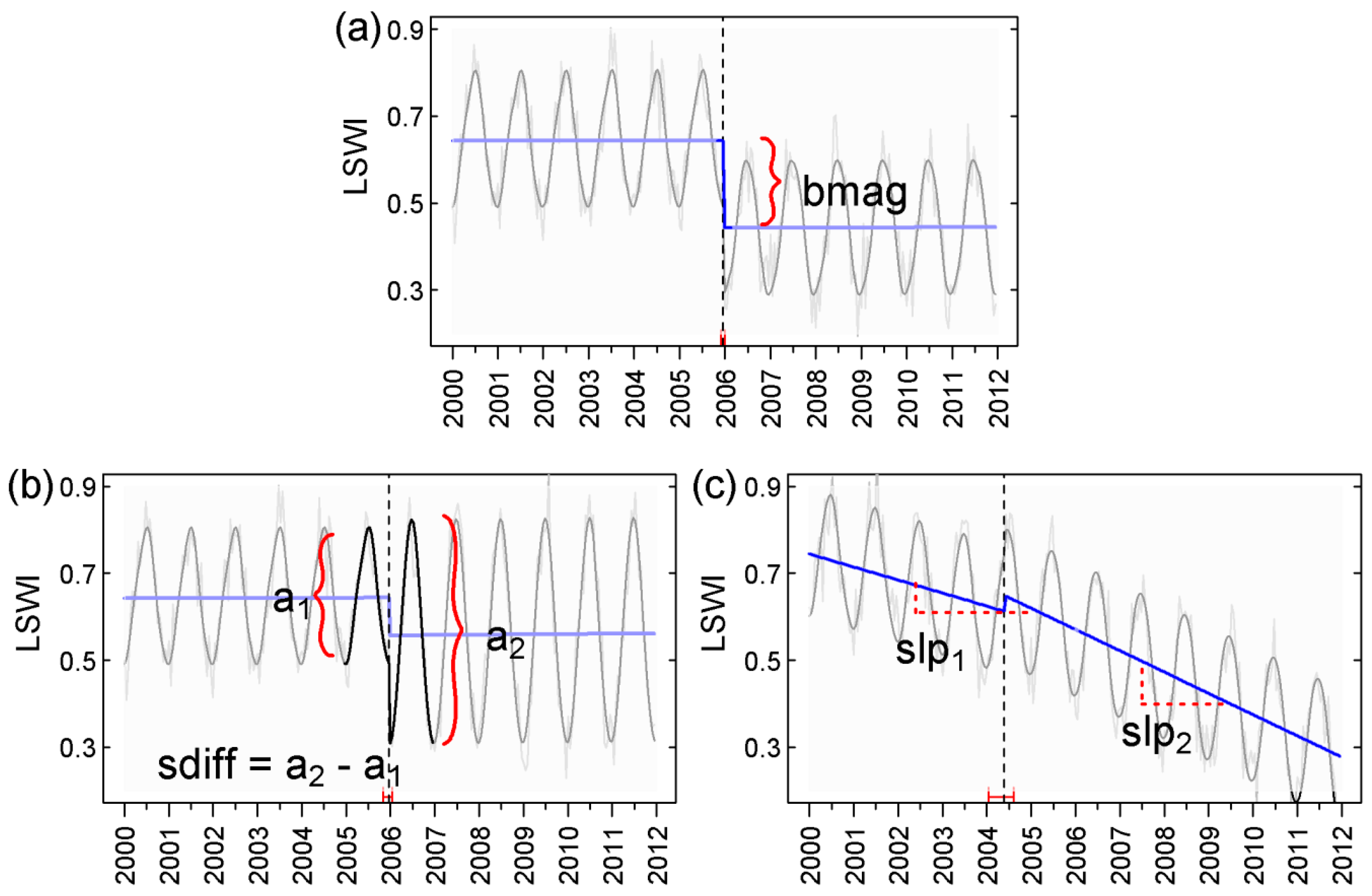 - Forest clearing can be detected using the break magnitude, trend segment slope and/or changes in the seasonal component. Can combining these three components in a single change model improve detection accuracies compared to using only a single component?