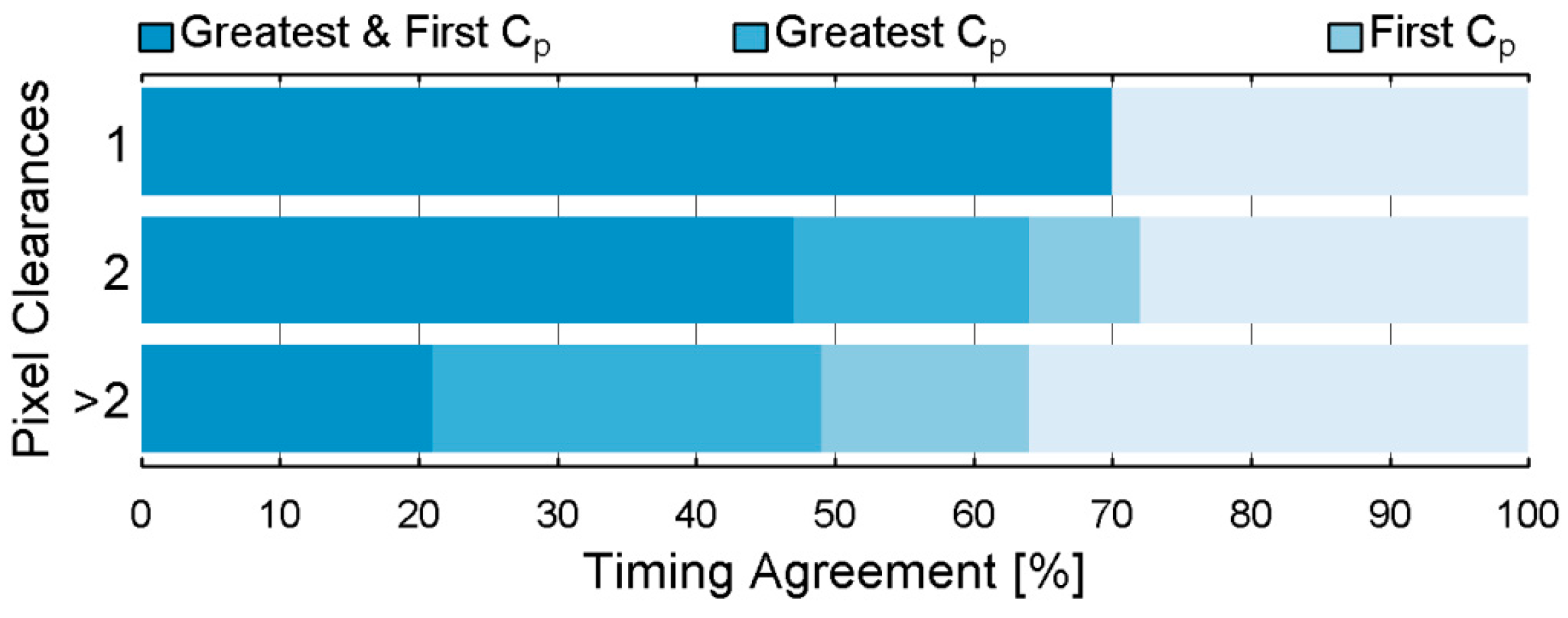 3.6. SPATIAL/Temporal Accuracy and the Effects of Sub-Pixel Clearances