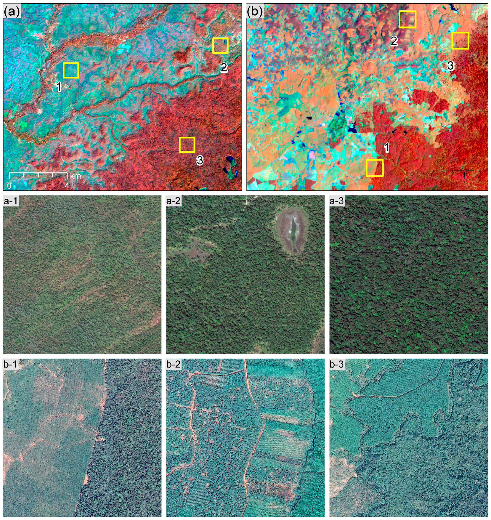 - Broich, M.; Hansen, M.C.; Potapov, P.; Adusei, B.; Lindquist, E.; Stehman, S.V. Time-series analysis of multi-resolution optical imagery for quantifying forest cover loss in Sumatra and Kalimantan, Indonesia. Int. J. Appl. Earth Obs. Geoinf. 2011, 13, 277–291. [Google Scholar] [CrossRef]