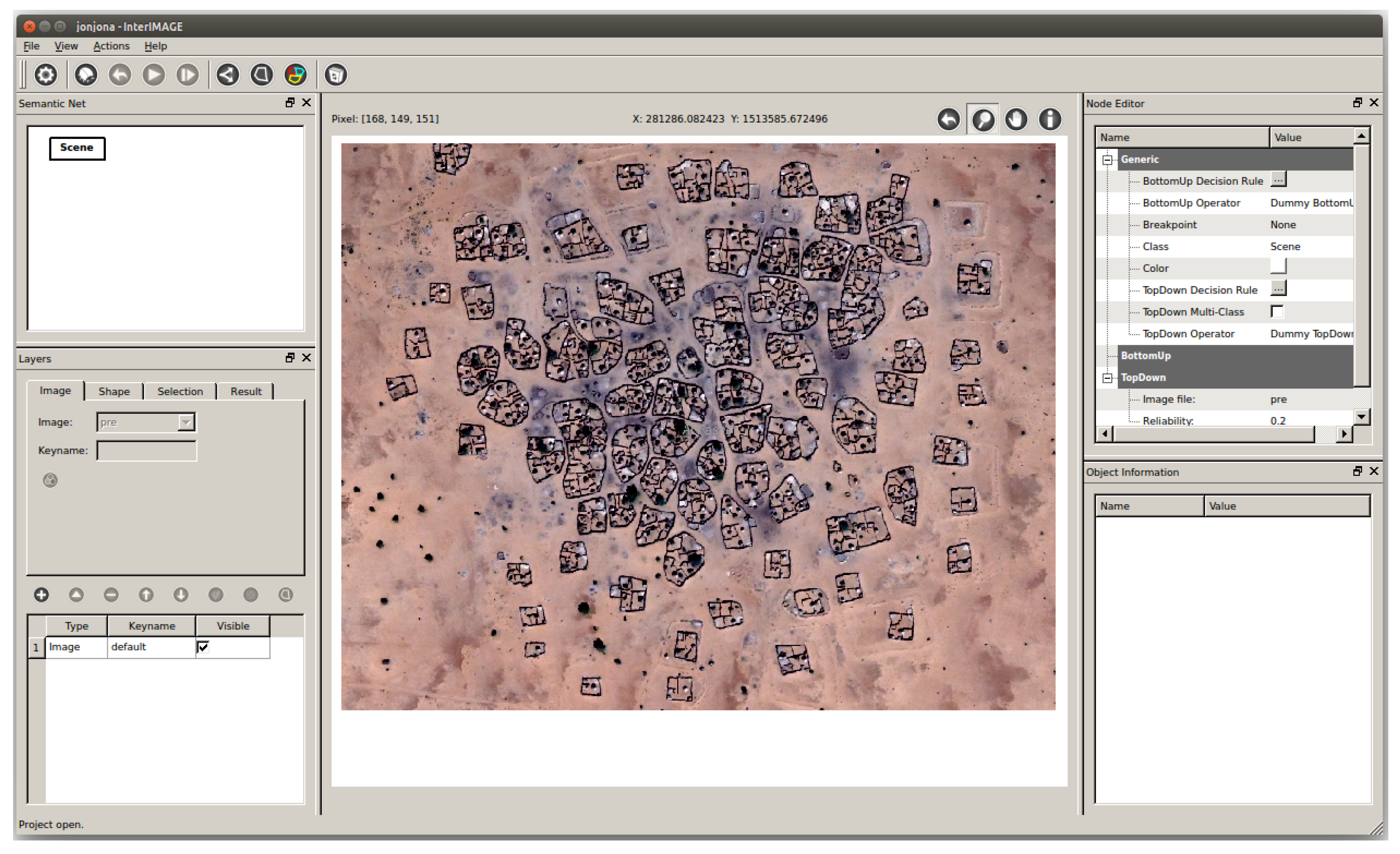 - Costa, G.; Feitosa, R.; Fonseca, L.; Oliveira, D.; Ferreira, R.; Castejon, E. Knowledge-based interpretation of remote sensing data with the InterImage system: Major characteristics and recent developments. In Proceedings of the GEOBIA 2010: Geographic Object-Based Image Analysis, Ghent, Belgium, 29 June–2 July 2010.