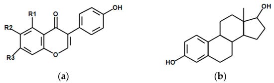 Malonyl glycoside isoforms are predominant among soy foods [145,146]; however, a minor fraction of isoflavones occurs in aglycone form (especially in fermented products) or acetylglucosides, mainly after thermal treatment [147,148]. The isoforms of soy isoflavones and similarity between isoflavones and endogenous oestrogens are shown in Figure 1.