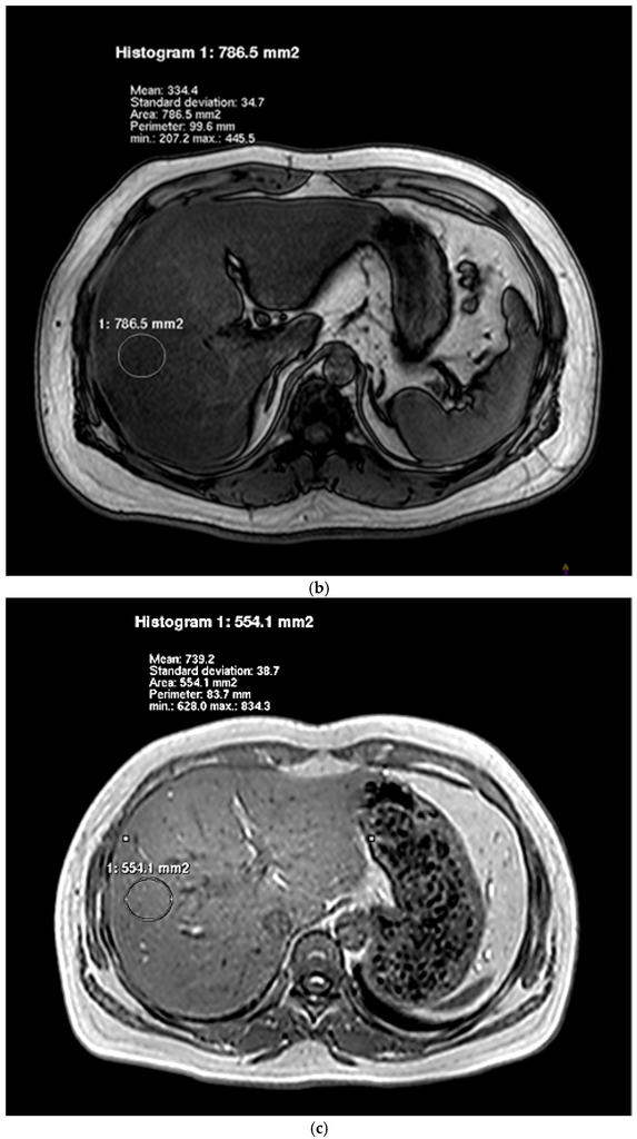- Fishbein, M.H.; Gardner, K.G.; Potter, C.J.; Schmalbrock, P.; Smith, M.A. Introduction of fast mr imaging in the assessment of hepatic steatosis. Magn. Reson. Imaging 1997, 15, 287–293. [Google Scholar] [CrossRef]