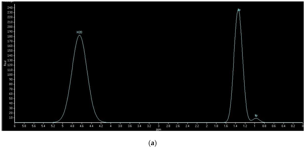 - Sharma, P.; Martin, D.R.; Pineda, N.; Xu, Q.; Vos, M.; Anania, F.; Hu, X. Quantitative analysis of t2-correction in single-voxel magnetic resonance spectroscopy of hepatic lipid fraction. J. Magn. Reson. Imaging 2009, 29, 629–635. [Google Scholar] [CrossRef] [PubMed]