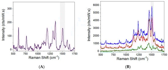 Surface-enhanced Raman scattering (SERS) spectroscopy is based on the enormous enhancement of Raman scattering of molecules adsorbed on suitable metallic nanostructures. The amplification of signals in SERS only occurs in very close vicinity (ca. < 10 nm) to the metal substrate and relies on the electromagnetic interaction of light with metals. There are two widely accepted mechanisms for SERS, i.e., the chemical mechanism (CM) and the electromagnetic mechanism (EM). CM is based on a charge transfer between the molecule and the substrate. Because of this transfer, the polarizability of the molecule increases and consequently, the Raman cross-section of the molecule. This enhancement is usually 10–102. However, the EM is based on the enhancement of the local electromagnetic field that results in a significant increase in Raman signal, proportional to |E|4. This increase can become 108 or more. The interaction of the light with the metal substrate produces large amplifications of the laser field through excitations generally known as plasmon resonances []; either localized surface plasmon resonances (LSPRs) for 0D and 1D nanostructures or propagating surface plasmon polaritons (SPP) for 2D tunable nanostructures []. Nowadays, Surface Enhanced Raman Scattering (SERS) outstands as one of the leading techniques for label-free ultrasensitive vibrational fingerprinting of a variety of molecular compounds [,,,,].