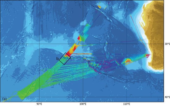 - Becker, J.J.; Sandwell, D.T.; Smith, W.H.F.; Braud, J.; Binder, B.; Depner, J.; Fabre, D.; Factor, J.; Ingalls, S.; Kim, S.H.; et al. Global bathymetry and elevation data at 30 arc seconds resolution: SRTM30_PLUS. Mar. Geodesy 2009, 32, 355–371. [Google Scholar] [CrossRef]