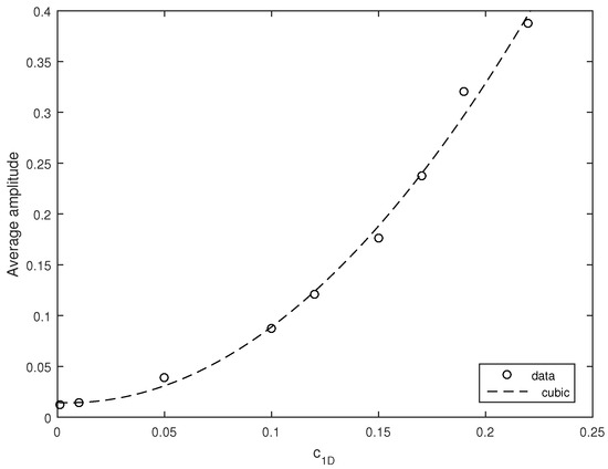 The average amplitude of the oscillations appears to increase with an increase in the noise intensity. Figure 11 shows the zooplankton density (considered here as a proxy of the system state) averaged over ten simulation runs obtained for several different values of . Interestingly, the dependence of the average amplitude on is described very well by a cubic polynomial; see the black dashed curve in Figure 11.