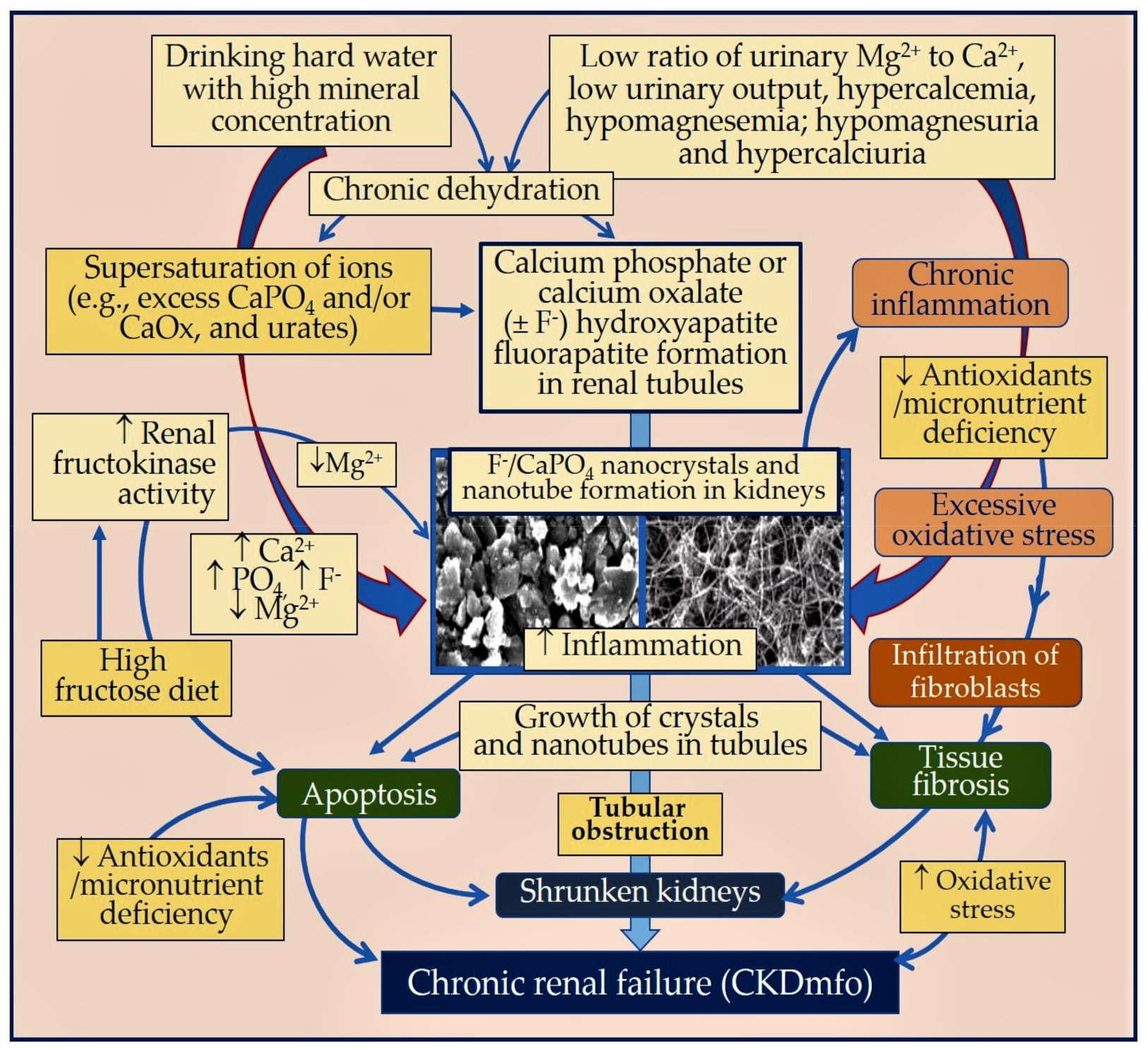 - Wimalawansa, S.J. Molecular and cellular toxicity of fluoride in mystery, tubulointerstitial chronic kidney disease: A systematic review. Rev. Environ. Sci. Biotechnol. 2019, in press. [Google Scholar] [CrossRef]