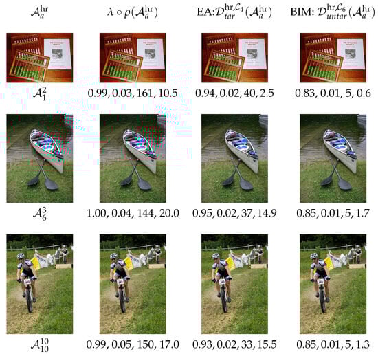 Indeed, an adversarial HR image against for the target scenario performed by an attack on is an image , that satisfies two conditions (note that the notation , with t as index, encapsulates and summarizes the fact that the adversarial image is obtained for the specific target scenario considered). On the one hand, a human should not be able to notice any visual difference between the original and the adversarial HR images. On the other hand, should classify the degraded image in the category for a sufficiently convincing -label value. The image is then a good enough adversarial image or a -strong adversarial image if its reduced version is.