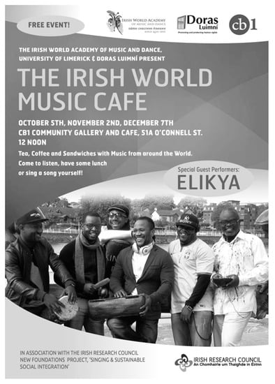 Elikya, for example, have become the musical patrons of a movement called The Irish World Music Café (See Figure 4). Started in response to the Syrian refugee crisis, it is a monthly gathering of people from around the world to sing, share stories, food and fellowship.