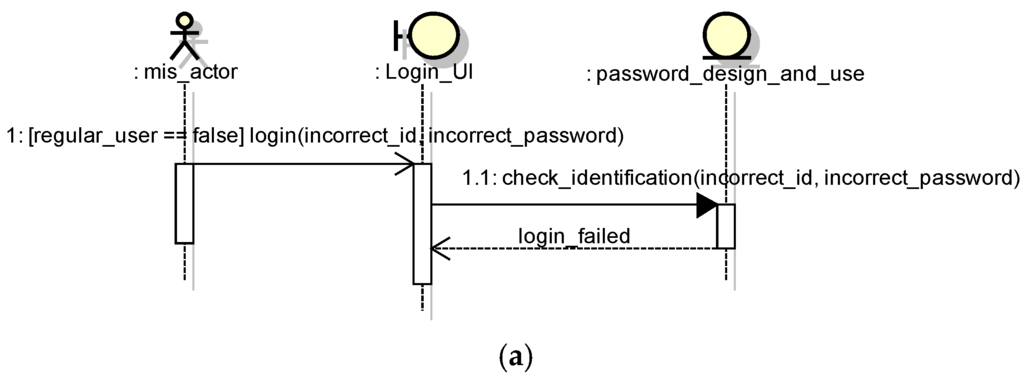 Behavior to access an asset (Password Design and Use pattern). (a) Failure case; (b) Success case.