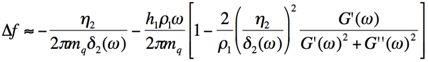 where η is the viscosity, m the mass, ρ the density, ω the angular frequency, h the thickness of the adsorbent, G’ the storage and G’’ the loss modulus of the adsorbent. The index ‘1’ corresponds to the adsorbed layer, the index ‘q’ to the quartz and the index ‘2’ to the bulk liquid [25]. This model assumes that the viscosity of the adsorbent is constant over frequency, which is most likely not the case for most materials and should be therefore be carefully used especially if the measurement covers a broad range of frequencies [26].