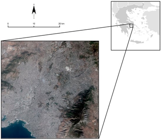 The study area is the central part of Athens Metropolitan area, covering ~350 km2 in a dense cityscape surrounded by two mountainous massifs; Hymettus on the southeast and Aigaleo (Poikilon Oros) on the west-northwest side of Athens (Figure 2). Athens is the capital and largest city of Greece, dominating the Attica region. The central part of the area is characterized by a low/moderate relief with an average elevation of 400 m in the urban area.