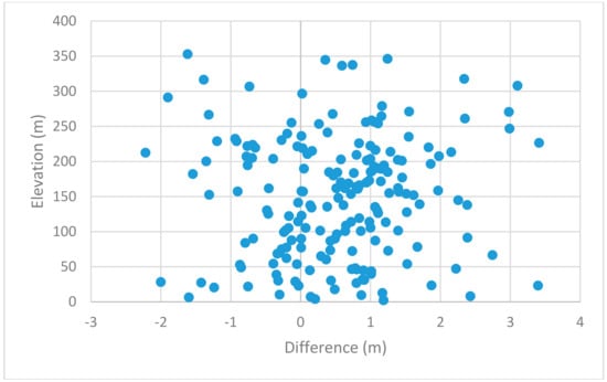 Scatter plot of Pleiades-reference DSM difference vs. elevation. No important bias is being observed.