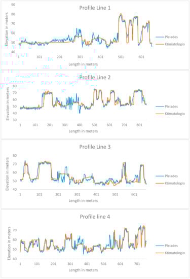 Line profiles with elevation data from Pleiades and Ktimatologio.