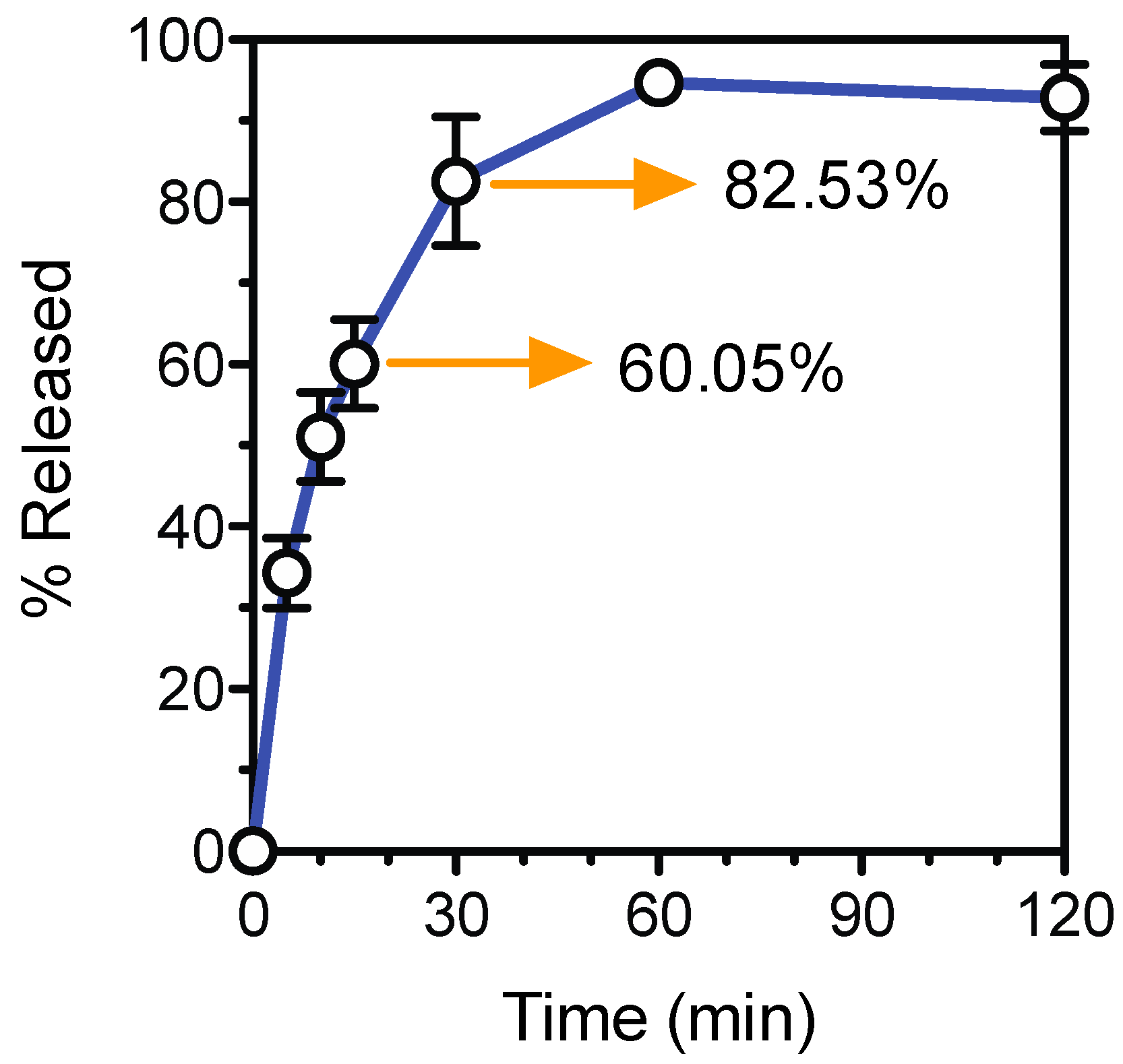 The formula was filtered through a 0.22 µm filter (Fisherbrand) and dispensed into preform tablets (71.25 µL for 5.7 mg of Ropinirole HCL) by using a piezoelectric dispenser with an 80 µm diameter nozzle (MJ-ABP-01-080, MicroFab Technologies, Plano, TX, USA). A dispensing system (MD-E-3000, Microdrop Technologies, Norderstedt, Segeberg, Germany) was used to drive the piezoelectric nozzle, set at 45 V, with a pulse width of 16 µs and a frequency of 2000 Hz. Droplet formation and continuous monitoring of the process was done with an analog camera (JAI CV-S3300), lens (Edmund Optics, Barrington, NJ, USA), and an LED light controlled by the Microdrop driver. After dispensing the formula into preform tablets, the solution was exposed to light for 2 min at 120 mW/cm2 to induce polymerization and the tablets were capped. In vitro drug release was measured by placing the tablets inside Uni-cassettes (Tissue-Tek) and submerging them in 200 mL of dissolution medium (2.9 g/L of sodium citrate dihydrate and 3.3 g/L of anhydrous citric acid in water at a pH of 4.0). The dissolution test was conducted at 37 °C and stirred at 60 rpm. 1 mL aliquots were taken after 5, 10, 15, 30, 60, and 120 min of dissolution. The volume removed was replaced with fresh dissolution medium to keep the total volume constant. The aliquots were centrifuged, filtered, and the Ropinirole HCL content was measured by HPLC analysis (Prominence Modular HPLC, Shimadzu, Nakagyō-ku, Kyoto, Japan).
