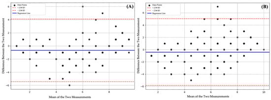 Background/Objectives: The aim of this study was to evaluate the accuracy of aesthetic assessments performed by artificial intelligence (AI)-based large language models (LLMs) using the Aesthetic Component of the Index of Orthodontic Treatment Need (IOTN-AC), which is widely applied to determine the need for orthodontic treatment. Methods: A total of 150 frontal intraoral photographs from patients in the permanent dentition, scored from 1 to 10 on the IOTN-AC, were assessed by two AI-based LLMs (ChatGPT-5 and ChatGPT-5 Pro). Two experienced clinicians independently scored all photographs, with one evaluator’s scores used as the reference (κ = 0.91, ICC = 0.88). Model performance was analyzed by comparing IOTN-AC scores and treatment need classifications. In addition, performance parameters such as accuracy, precision, specificity, and sensitivity were evaluated. Statistical analyses included Spearman correlation, Cohen’s Kappa, ICC, Mean Absolute Error (MAE), Wilcoxon signed-rank test, and Bland–Altman analysis. Results: Both models demonstrated positive and significant correlations with the reference values for scoring and classification (p < 0.001). Compared to GPT-5 Pro, the GPT-5 model exhibited superior performance, with a lower error rate (MAE = 1.47) and higher classification accuracy (66.7%). Bland–Altman analysis showed that most predictions fell within the 99% confidence interval, and regression analysis revealed no systematic bias (p > 0.05). Conversely, the models failed to achieve consistently high performance in each of the performance parameters. Conclusions: The findings revealed that although AI-based LLMs are promising, statistical accuracy alone is insufficient for safe clinical use, and they should demonstrate consistently high performance across all parameters. Full article