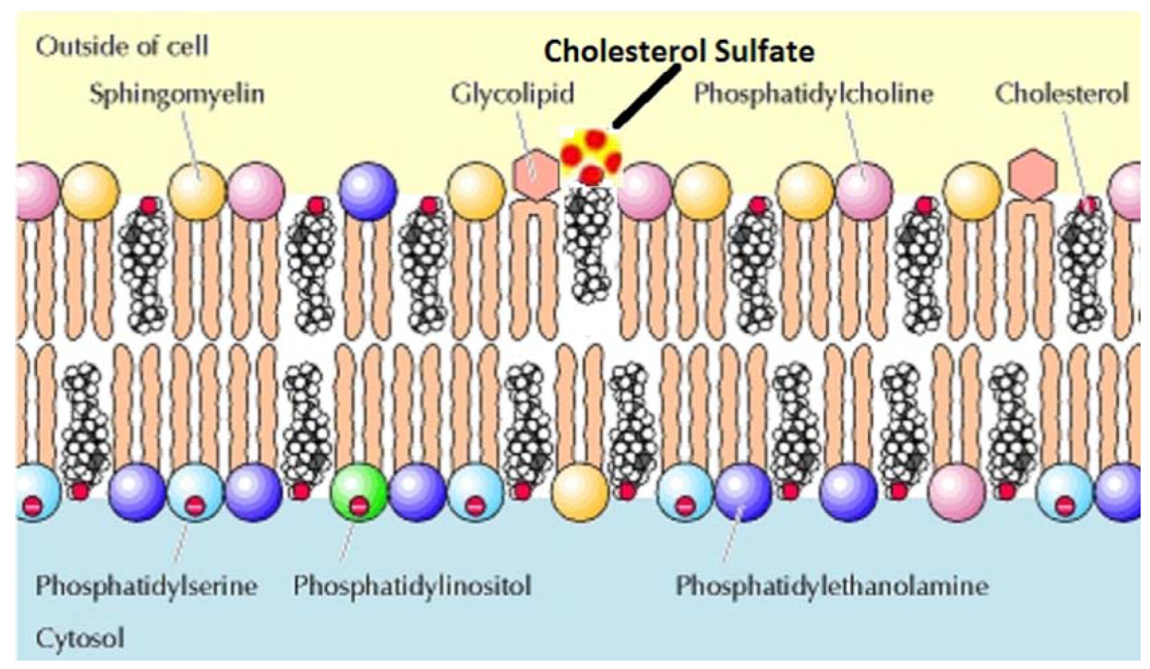 Graphical depiction of cholesterol sulfate in the red blood cell membrane. Adapted from Cooper and Hausman: The Cell: A Molecular Approach, Fifth Edition, [272] by permission of the publisher.