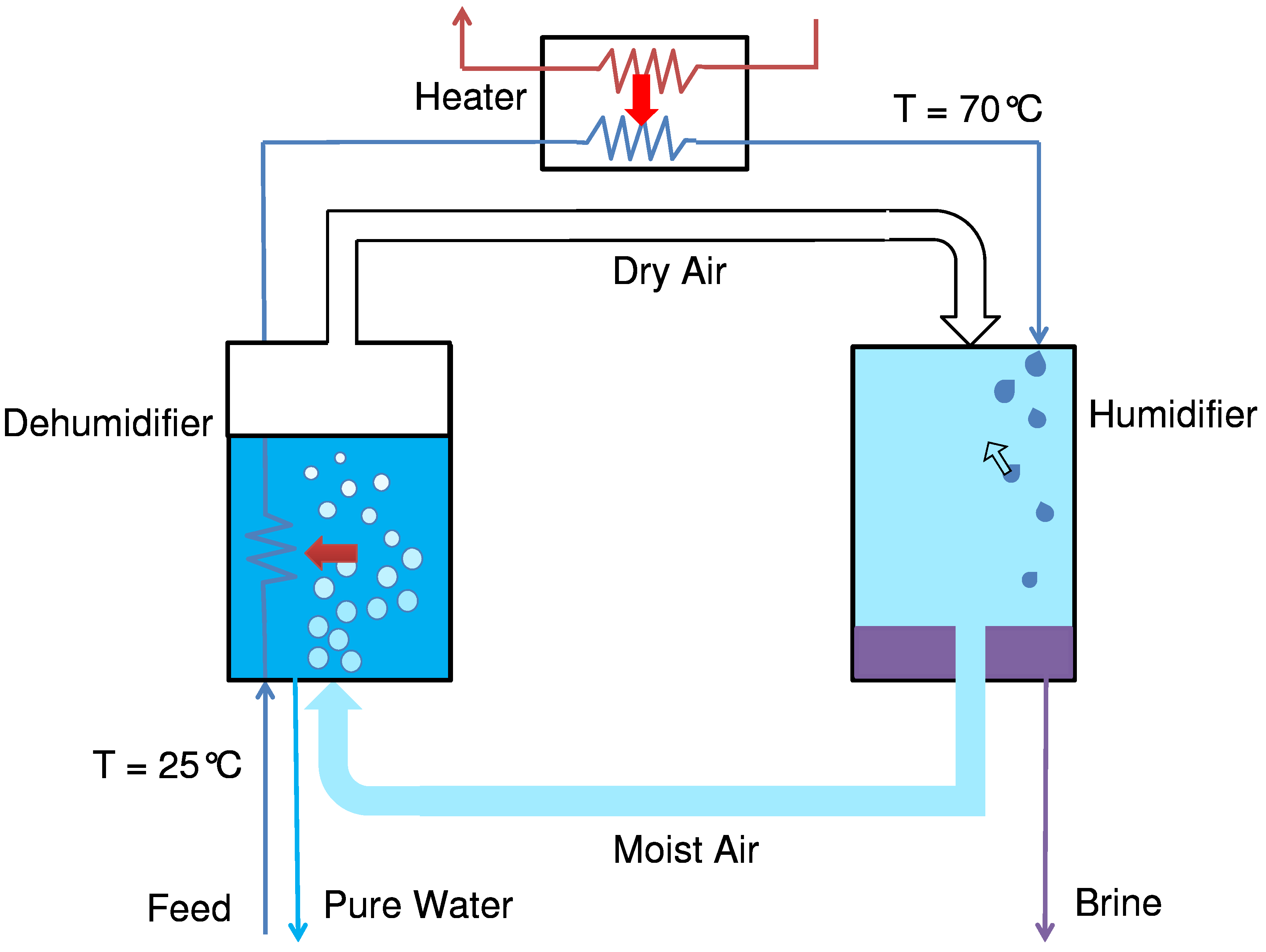 - Mistry, K.H.; Mitsos, A.; Lienhard V, J.H. Optimal operating conditions and configurations for humidification-dehumidification desalination cycles. Int. J. Ther. Sci. 2011, 50, 779–789. [Google Scholar] [CrossRef]