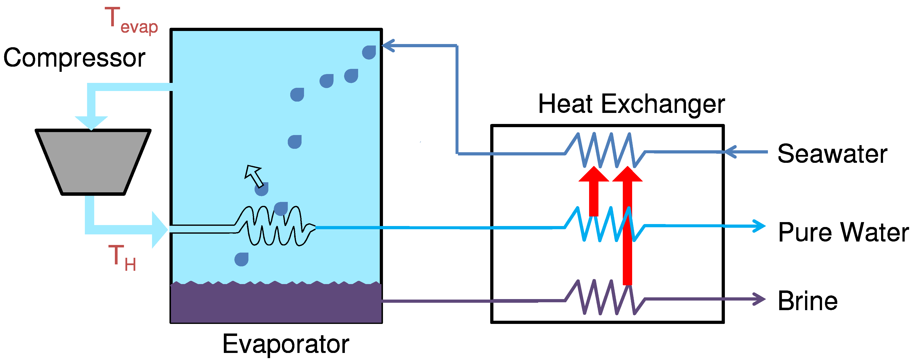 - Veza, J.M. Mechanical vapour compression desalination plants—A case study. Desalination 1995, 101, 1–10. [Google Scholar] [CrossRef]